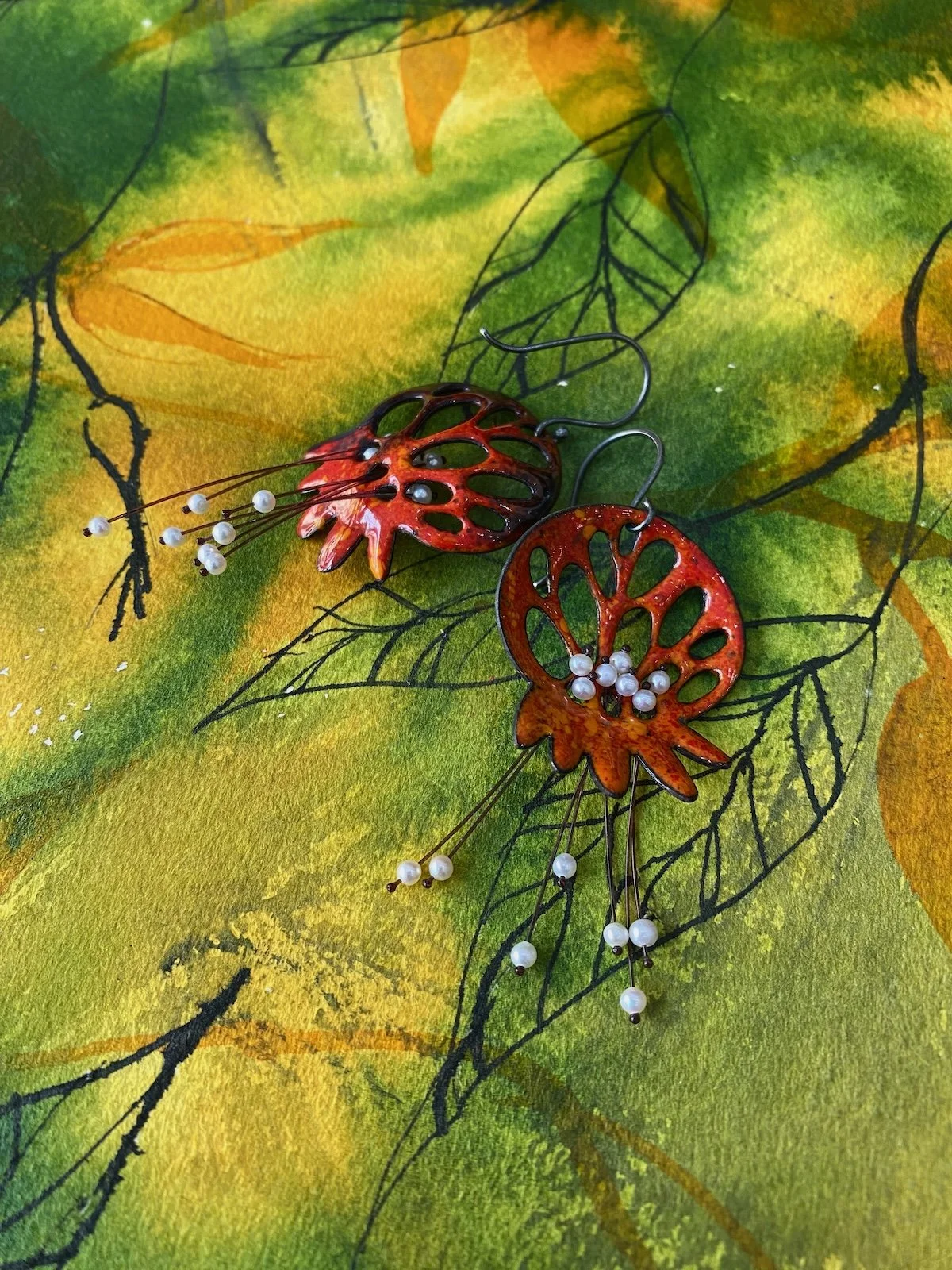 Blood Red Tilia: Statement earrings in a celebratory gush of red enamel and shimmering black pearls, available here.